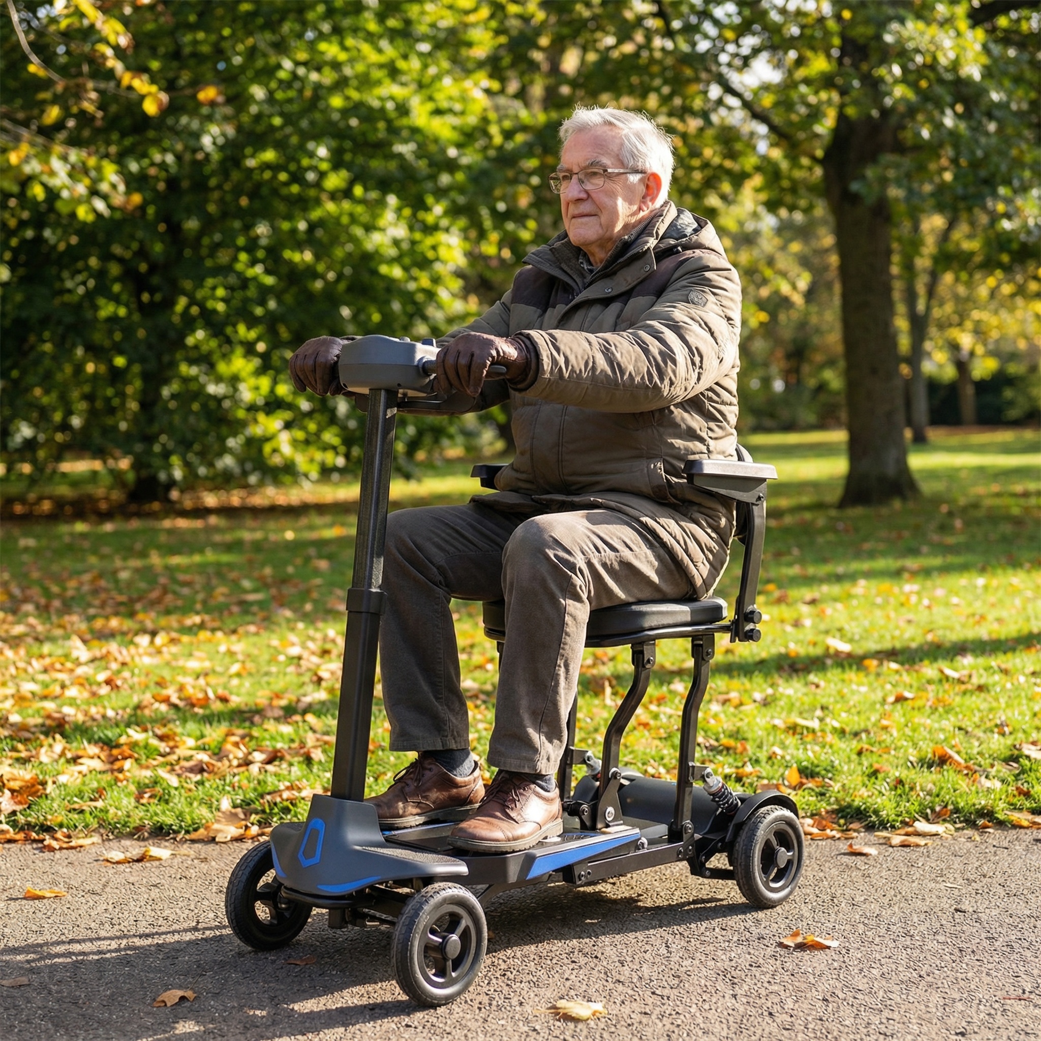 Our folding mobility scooters are lightest in their segment. The Porta-Scooter, The Genie Lite 300, and the Solax Charge all fold down easily and quickly for transport. Delivery, and instruction on use can also be arranged.