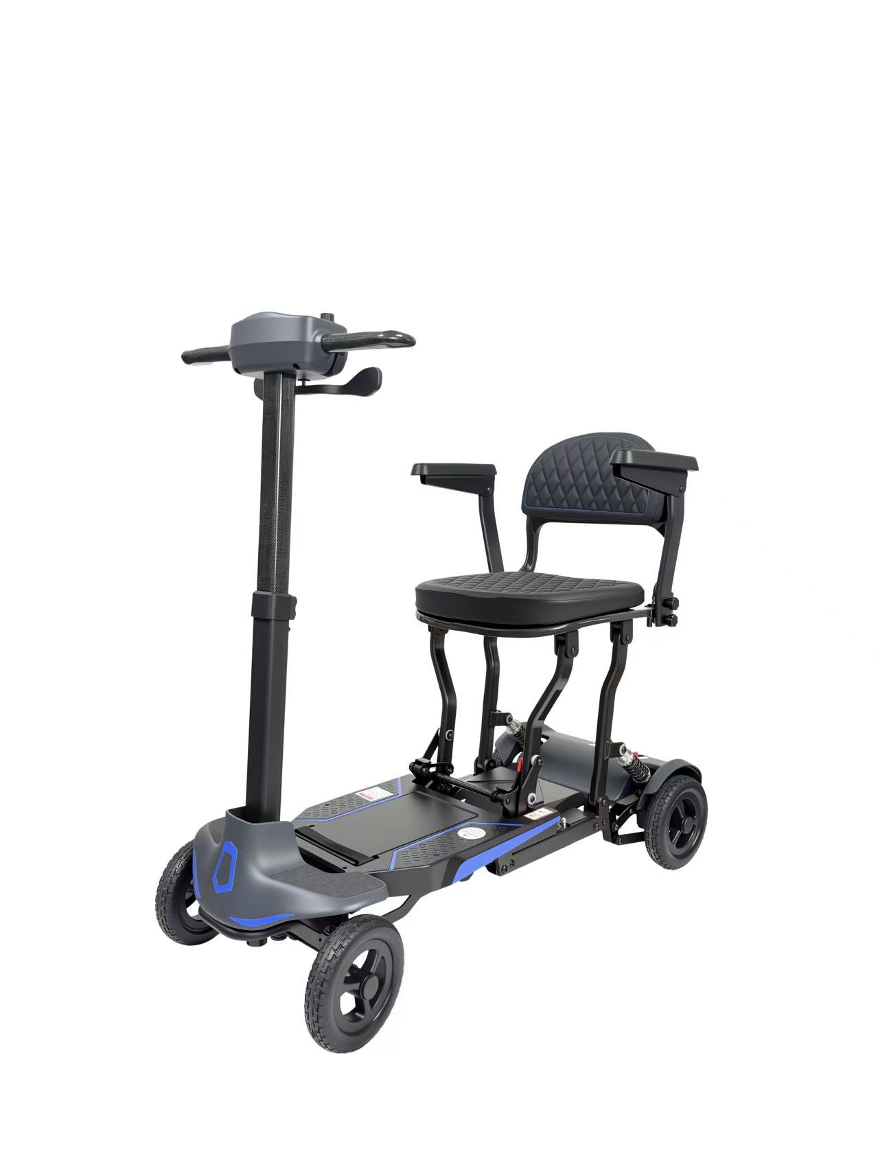 Genie Lite Auto Folding Mobility Scooter – with suspension is the latest lightweight automatic folding mobility scooter. Fold/unfold by remote control. It effortlessly blends style and comfort, with great user performance and functionality. Comes with a full magnesium alloy frame for lightweight, and rear suspension for added comfort.
